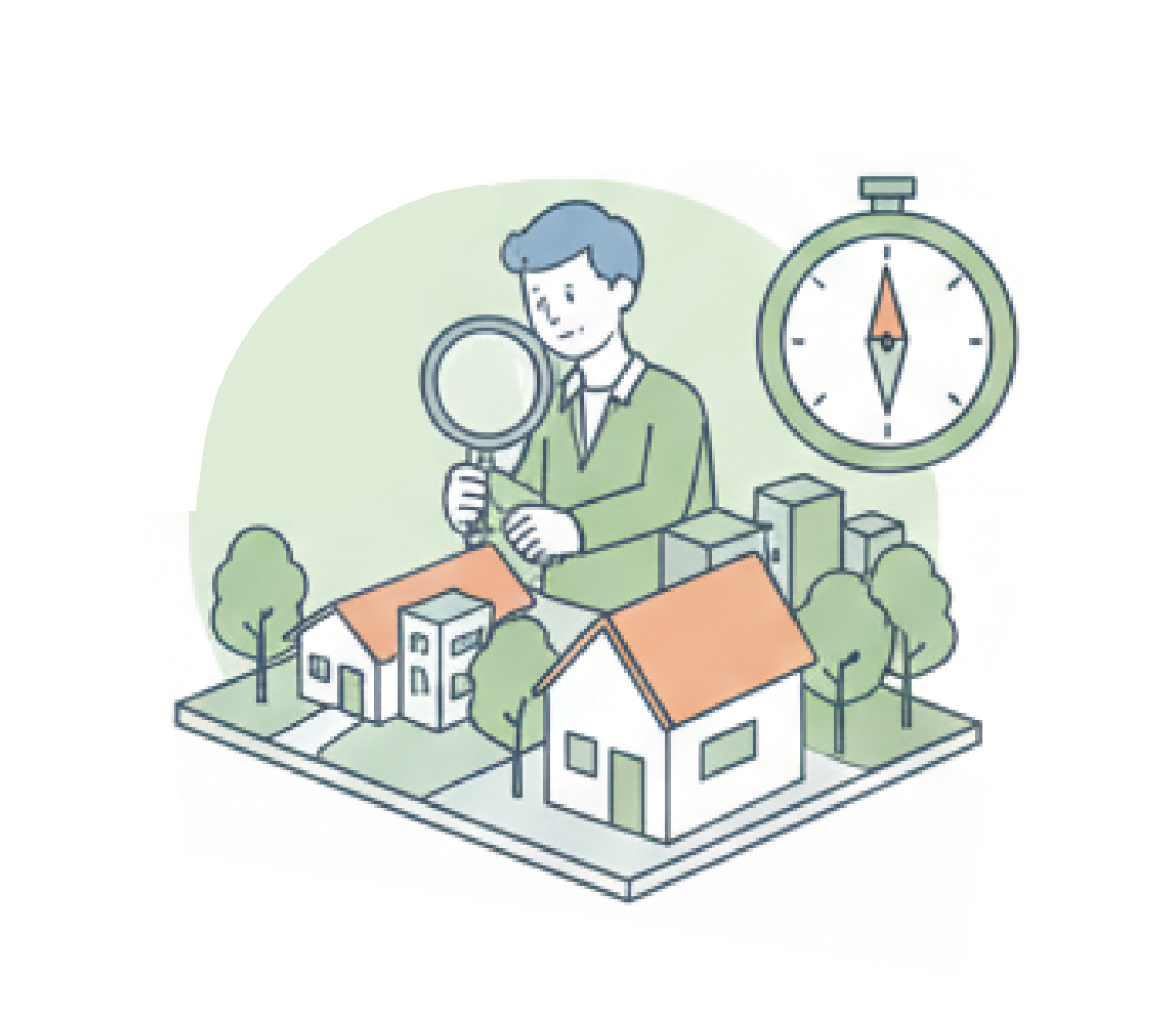 宅地建物取引士がオーナー様に代わって現地を確認し、立地や建物の状況を踏まえた適正な査定を行います。机上では分からない点まで丁寧に確認し、最適なご提案をいたします。