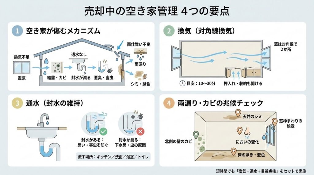 不動産売却中の空き家管理ガイド|劣化を防ぐ換気と近隣トラブル